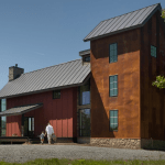 This modern interpretation of a cabin retreat focuses on sustainability and was crafted from modular components, including structurally insulated panels and a steel chassis. The 1,000-square-foot home uses 85% less concrete than a typical house. Born out of research, the home is clad in magnesium oxide wallboards that eliminate the need for exterior siding and interior drywall, and are extremely durable as well as fire and water resistant.