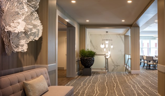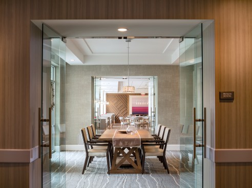 This 52 unit facility features a two-story aquatic center with wellness spa including yoga, meditation, fitness and massage rooms. Other program spaces include an immersive theater, dining room with display kitchen, private dining area, living room with fireplace, library, bistro and outdoor patio linking to the exterior amenity space of the adjacent assisted living residence, The Residences at Wingate.