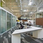 To coincide with One Workplace’s approach to sustainability, the workspace reflects the company’s “smaller office, bigger opportunities” philosophy. The company moved from a 45,000-square-foot space into the new 35,000-square-foot office while increasing staff from 101 to 165. Blitz increased office efficiency by reducing the number of dedicated workstations and moving the majority of the sales team to a mobile work flow. Mobile workers store their belongings at a centralized location and work either at a shared workstation, soft seating at the work café, or alternative meeting areas.