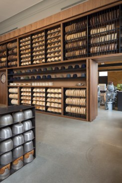 Expressed as a contemporary workshop with an industrial aesthetic, the design draws from a palette of refined, understated materials, including blackened steel, walnut, and cork. SOM worked with Optimo to create an efficient and collaborative work flow, more than doubling Optimo’s production capacity and accommodating future expansion. “Our intention was to create an exceptional hat factory to produce an exceptional product,” says Optimo owner Graham Thompson. “Collaborating with SOM was key in reimagining this space—we both approach design with integrity and purpose.”