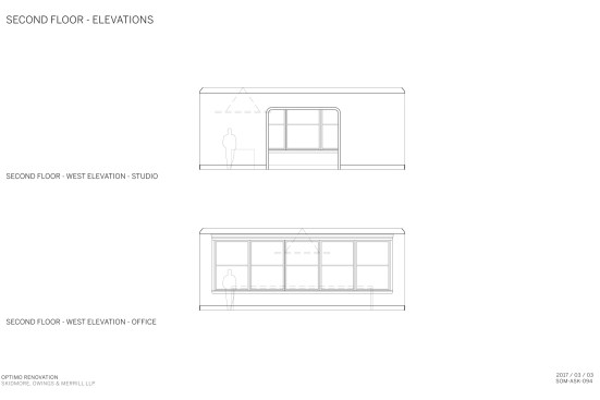 The existing structure, at 7,700 square feet, allowed the program to be distributed across its three floors. The first is dedicated to manufacturing, while the second and third stories house, respectively, a design studio and Optimo’s offices. Overall, the design encourages efficiency and collaboration by organizing the manufacturing equipment and distribution of electrical, steam, and compressed air to maximize productivity and create a healthy workspace.