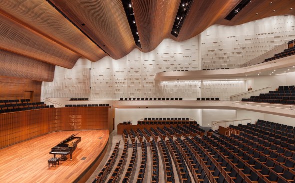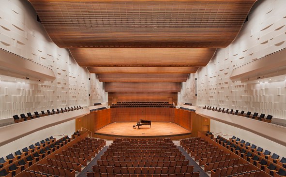 The concert hall itself began with a commitment to achieving an acoustically magnificent experience for audience and performers alike, with an intimate sound that exudes warmth, resonance and clarity. Likewise, the interior look of the hall was conceived as a close, intimate setting, able to foster an engaged, emotive connection between artist and audience.