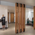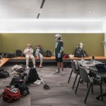 The design team’s engagement with OES students and athletic department staff heavily influenced the design process with intentional conversations focused on schedules and routines. A primary consideration for the Athletic Center is the accommodation of mixed-gender teams as well as coaches with differing gender from the student-athletes. Partnered in the commitment to be an inclusive, equitable, and future-forward campus hub, the design team and OES envisioned a space that replaces locker rooms with flexible, all-purpose team rooms allowing student-athletes and their coaches a mix of private and communal space. The design centers on the reclamation of underutilized spaces, replacing facilities like showers and lockers with flexible, all-purpose team rooms encouraging team building of their all-skill-level mixed-gender teams.