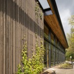 The site of the new Athletic Center anchors campus at the north and provides an additional accessible entry into the nexus of campus. The exterior envelope shares a common language with the recently completed lower school, where the vertical wood slats and texture reference the nearby campus woods. A south-facing elevated concourse with direct views into the forest serves as a multi-use commons, connecting peers and providing ample space for independent study or gathered sports viewing.