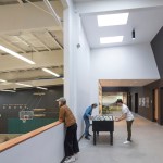 The directive from OES was to create a safe and supportive experience for all students regardless of their interest or skill in sports by transforming an aging gymnasium building into a vibrant new athletics center to support varsity team sports and physical education classes. The Athletic Center features flexible student and faculty meeting spaces; dedicated team rooms that replace standard locker rooms; group collaboration spaces throughout; two full-size gymnasiums; and physical education and athletic department offices.