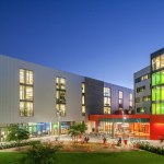 On the interior low/no VOC paints, sealants and adhesives were used both for sustainability reasons and to increase occupant comfort upon move in. The project was completed just 1 month before students would be moving into the dormitories, so the design team was conscious of their initial experience. Dimmable daylight and vacancy sensor lighting was installed to help students have more control over their space, while saving power.
