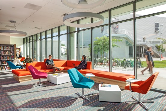 For nearly twenty years this art and design school’s campus was comprised of eclectic buildings and no real sense of a “place.” This new LEED Platinum certified expansion adds nearly 100,000 sf of building to the tight site, and creates a central quad and cohesive campus feeling that the students were missing before.