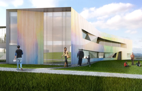 The Otto Specht School offers an academic and artistic Waldorf School education to students with special needs. The K-12 school, designed to meet zero net energy standards, is located at the junction of a natural landscape, an organic farm, and a neighboring community’s gardens. The buildings’ forms are attenuated, stretching voluminously over the landscape, as though they were pulled and twisted into being—infusing the environment with kinetic energy. Organized into two wings—a classroom wing sited to the west overlooking farmland and an arts wing to the north—the structures create a variety of spaces, inside and out, for learning and play.