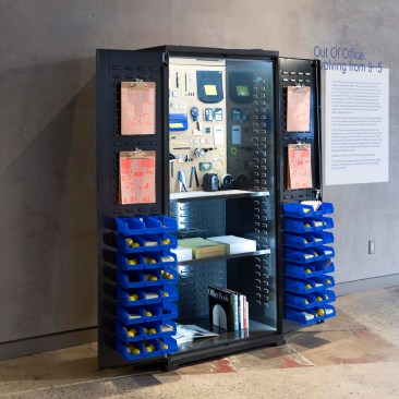 Out of Office: Evolving the 9-5 at A/D/O by MINI (in collaboration with TORTUGA Living and Alex Gilbert) is a site specific and live interactive exhibition at A/D/O by MINI, the interdisciplinary creative space in Greenpoint, Brooklyn. The exhibition explores thematic connections between office concepts, objects, and technology live in an active collaboration space, prompting designers to expand their role in the creation of new, humanistic formats for work. The exhibit supported a series of events and workshops on the design, culture, and technology of work. Out of Office included contributions from Herman Miller, Nonfood, and Cher. Soft-Firm designed and coordinated fabrication of custom millwork, collaborated on graphic design by Studio TheGreenEyl, and commissioned original digital content by Channel Studio.