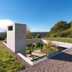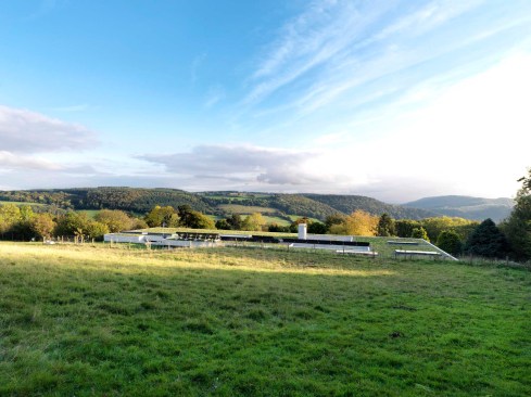 The simplicity of the house, which was undoubtedly hard-won, is founded on rigour and restraint. This is a house with a field on top – not an ‘architectural’ green roof but a proper field, punctured with light wells that creatures are having to learn to avoid. It is a concrete house where the concrete feels warm and luxurious and a considered and crafted palette of surfaces form a backdrop for the artist-owners’ own refined art and furniture.
