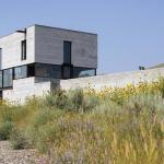 Designed for an artist, this house is a concrete block bunker, but its interior materials—Carrara marble kitchen counters, reclaimed barn wood, and plaster made from natural clays—are earthy and pleasant to touch. The floor plan lives like a studio, with a single large room combining kitchen, dining, and living areas, and above, a mezzanine bedroom supported by an exposed steel beam. It may be a fortress, but it feels like a glass house. Enormous windows on all sides, some as large as 11 feet wide by 8 feet tall, take in the Idaho horizon. That sense of prospect and refuge extends outdoors, where concrete block walls—11 feet high and twice as long as the house—protect the owner’s flowers, vegetables, and fruit trees from the resident deer and antelope.