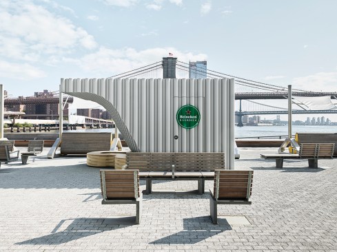 The pair of 150-square-foot kiosks serves up cold Heinekens and amazing views at the new Heineken Riverdeck at the Seaport District.