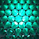 From inside, the effect is a bespoke lighting installation varying in multiple hues, shapes, and depths resulting from the angled curvature cut into the tubes’ ends.