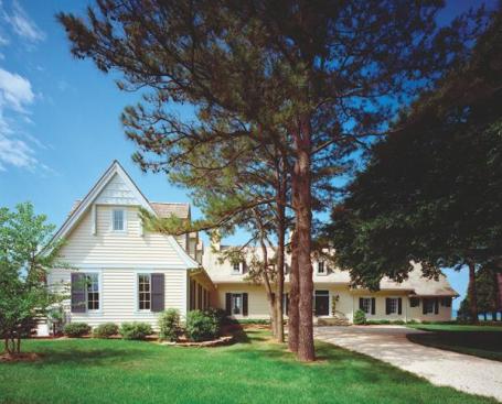 One judge’s metaphor describes the compatibility of this Maryland house with its waterfront site. “It sits like it’s lying on the beach with its toes in the sand,” he said. Muse Architects arranged the L-shaped plan so the public spaces line up parallel to the water, giving each room a prime view. The short leg of the L contains a garage and an upstairs guest suite, creating a gracious entry court at the front of the house. “The L allowed us to hide the garage from the approach to the house,” says principal Stephen Muse.