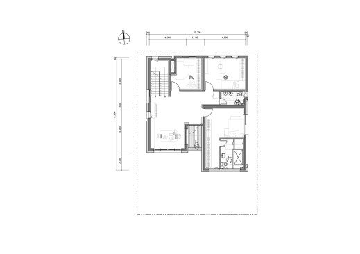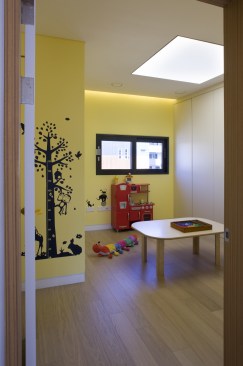 A small garden was provided for the family at the South ground floor area and the children’s room was located at the north side of the second floor where indirect sunlight enlightens the room throughout the day. The architect wanted to create a house needed for the family members and organized the client’s preferences into a client code. Based on this code and client’s requirements, the bathtub was located in front of the South window at the master bedroom to accomplish a bright restroom filled with natural sunlight.