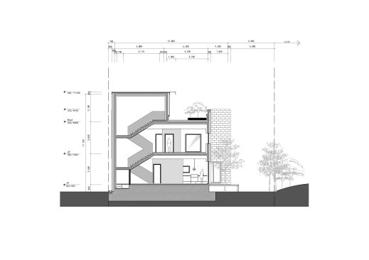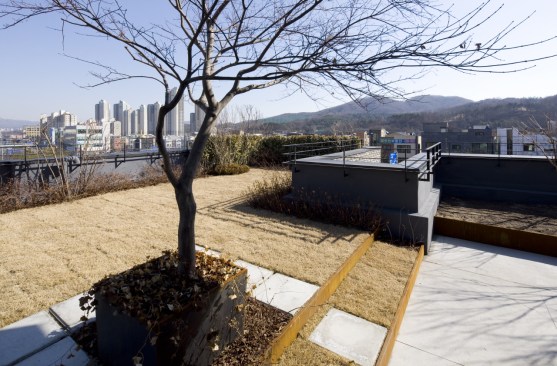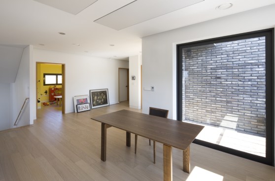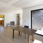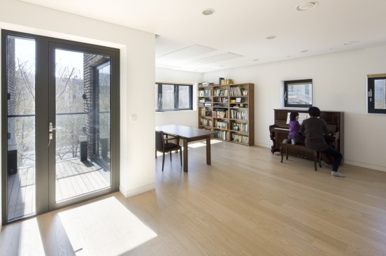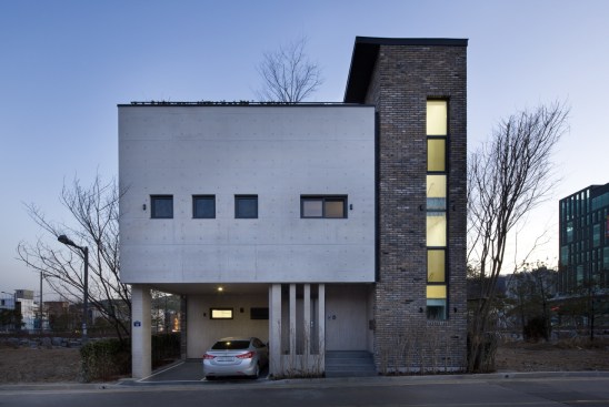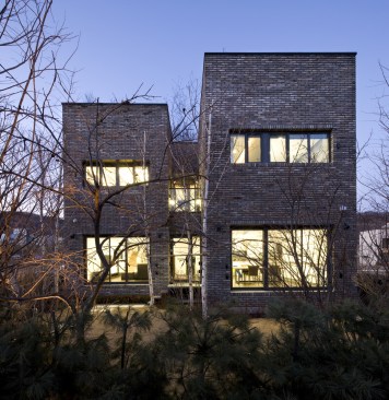 Though it’s quite rough, a bright exposed concrete was utilized Along with the China’s gray brick to express a three dimensional form. At the joint between the brick and the exposed concrete, elements such as down spouts are made with zinc to gain a rough but neat effect. The interior used an eco-friendly paint along with a solid wood floor to provide a standard comfortable family oriented living environment. Written by Joon H. Park