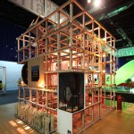 Fulfilling their objective they reinvented the space in hundreds of possibilities with only one option that parts from the base of infinite alternatives and proposes —as an allegory— a wooden structure that forms a large cube with outstanding niches of different sizes that frame the selected pieces to create a whole integrated of hundreds of small spaces.