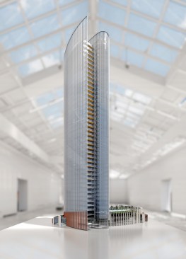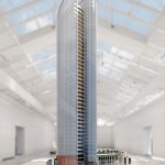 The proposed development consists of a 41-story concrete residential tower with 215 units above three levels of underground parking.
