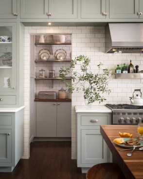 By opening up the main living/kitchen spaces, but without losing the sense of specific zones, we were able to create more “together” spaces filled with natural light. Subway tile in multiple rooms of the home tie the transitional aesthetic together, and creative storage solutions such as a hidden pantry and bench storage speak to the family’s specific needs and lifestyle.