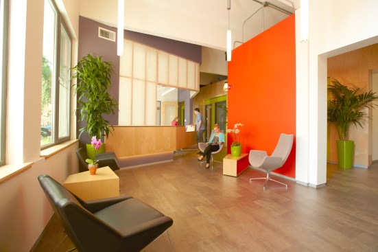 The location at 6th and Willamette is one of the busiest in the city, with the Hult Center for the Performing Arts right across the street, and the team wanted the façade to reflect the energy of the new owners and to be a vibrant part of the urban fabric.
