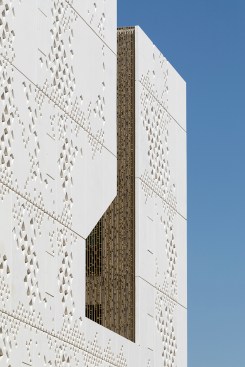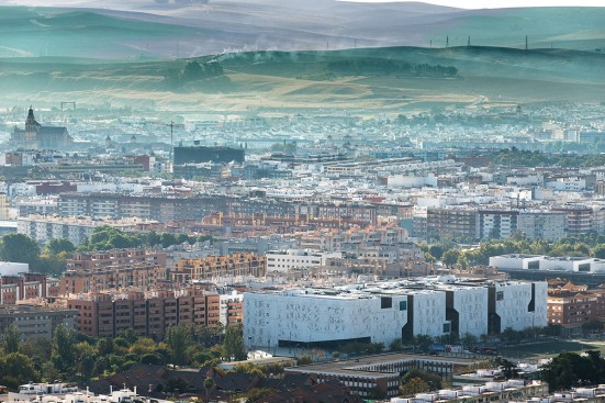 The new Palace of Justice in Córdoba is located in Arroyo del Moro which is characteristically dominated by anonymous housing blocks, products of the rapid urban development of 21st century Spanish cities. The blocks that characterize the urban fabric of the zone were not capable of generating public space or offering something new to the city, but collectively they form a compact and coherent urban identity. The addition of a public institution to the area creates the opportunity to upgrade the public realm and add a civic quality to this relatively new neighborhood.