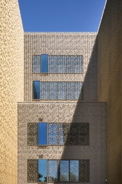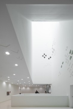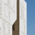 The vertical fractures that are introduced in the building mass create patios, relating the local courtyard typologies. These fractures provide natural light and ventilation in the central zones of the large building. One can say that the sustainability of the building is not achieved by expensive technological mechanisms but by an intelligent interpretation of the vernacular architecture.