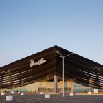 The façade is comprised of these horizontal elements designed in a range of dimensions and sections, giving rise to a clean and fluid movement that culminates in the framing of the principal entrance to the store at one of its corners. This entrance is reinforced by a large welcoming vestibule that serves as a transitional element with a majestic double height that permits the permeability of the façade. From the interior of the ground and first floors—where the gourmet food area is located—the exterior may be observed, thus breaking with the typical blind walls that define most department stores.