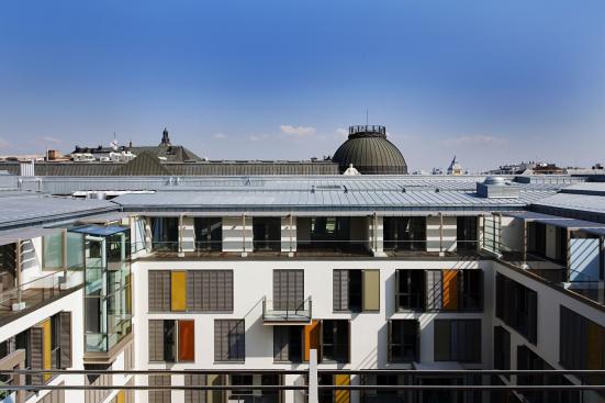 The existing building had floor-to-floor heights that are consistently around 3.5m nearly all the way to the top of the building. There fore it was possible that in the new inner courtyard areas these higher floors could be used to increase the occupied area of the building by one further floor, which would be a normal residential height, while at the same time giving us the opportunity to create some interesting duplex apartments that feel more spacious through the use of double height connections. An additional mezzanine floor added to the roof spaces in a similar way meant that a further total of 2,000sqms could be added to the sellable apartment areas of the whole building. Naturally this “intelligent” use of the section was much welcomed by the investor, and certainly not resisted by the municipality as it increased density without further affecting the magnitude of the building on site.