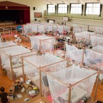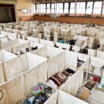 The evacuees of the great Japan Earthquake and Tsunami are currently taking shelter in evacuation facilities such as gymnasiums. They are forced to live in this situation for a few months, before temporary housings are deployed. They suffer from the lack of privacy and high density, which could cause damage both mentally and physically. We are currently making simple partitions made of paper tubes and canvas curtains to divide each families.