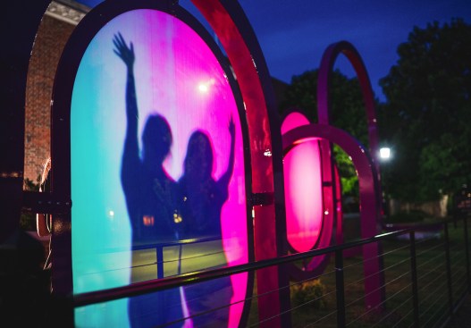 The space is transformed through the interactions of its users and surrounding context. It responds to the user and environment through the manipulation of light both during the day and at night as a tool to evoke moments of joy and wonder in the space. As visitors pass the work, they begin to realize their movement changes the colors of the panels sparking different filtered views of the context around them. The shadow play component of the work can be utilized in different areas of the work throughout the day and at night. At night the panels are backlit by red, yellow, and blue lights allowing you to play with your silhouettes and color mix with through your movements. pARC becomes a transformative landmark for all types of play, from physical to fantasy play, highlighting how play can be utilized as a critical tool in evoking more inclusive and equitable communal spaces.