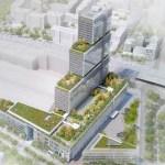 The eighth floor has a 7,000 sq m planted terrace; the staff restaurant opens onto this large garden. The towerâs outline breaks in two places, on the 19th and 29th floors, where âhanging gardensâ have been made. These green details extend Martin Luther King park right onto the building and are part of the design of a really âgreenâ skyscraper.