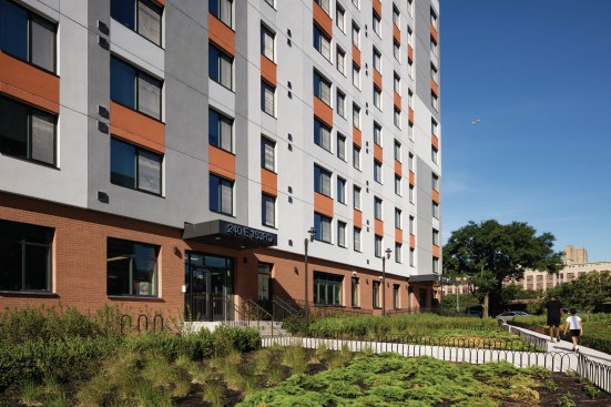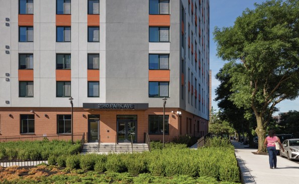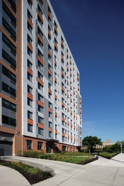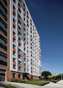 Park Avenue Green, designed and built to Passive House Institute US certification standards, provides sustainable housing in an innovative fifteen-story building. The projects 154 apartments provide much needed low-income housing to the Melrose neighborhood while incorporating state-of-the-art building technology to create a community of environmentally comfortable homes. Along with its highly insulated and thoroughly sealed building envelope, the design incorporates storm resiliency features and includes cogeneration, an extremely efficient variable refrigerant flow (VRF) heating and cooling system, and an array of photovoltaic panels on the roof. The ground floor houses a 4,300-square-foot community facility for the not-for-profit Spaceworks, providing affordable studio spaces and a gallery visible from the street to local artists.