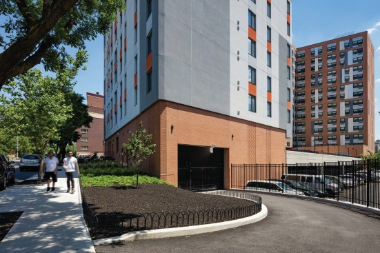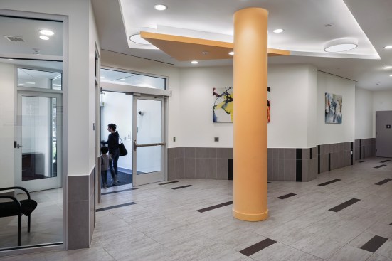 The design incorporates affordable apartments on an irregularly shaped site with few orthogonal angles, leading to the creation of dynamic spaces within units and in particular at common areas. At the Lobby, the angles are resolved into a series of triangles, which expands the perceptual size of the space. The lighting reinforces the geometry and the various uses within the Lobby. The façade design was developed to complement the adjacent Morris I Apartments, by the same owner, with a consistent base and a more dynamic and varied design above.