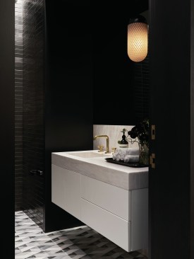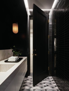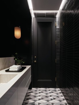 “When we are working in space without abundant natural light, we do everything we can to create a feeling of illumination without having to resort to visible fixtures. Every surface is considered for its properties relative to light. We tend toward contrast in both color and sheen to keep the spaces feeling visually lively, and we make ample use of LED strips that provide focused illumination where it counts.”