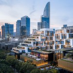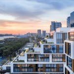 Inspired by the world renowned Suzhou Gardens, both the façade and the interior of the project connect the guests and residence to the natural surroundings. The filigree screens seen in the gardens were abstracted and reinterpreted into a simplified, ornamental screen on the buildings’ façade. This contrasts with the simpler primary terracotta cladding, conceived as a reference to the traditional Suzhou plasterwork that wraps many of the city’s buildings. With stepped massing and private terraces, each with exceptional views, the rooms are designed to provide an experience more akin to an intimate vacation home than a hotel.