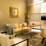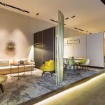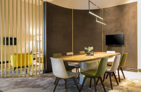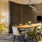 Some unique design pieces got involved like Artemide lighting fixtures, brass Nomon wall clocks combined with the polished black marble. The carpets used in the project were custom made. Anthracite colored decorative paints on seperator panels are creating contrast with brass bars while the acoustic oak panels are softening the ambience.