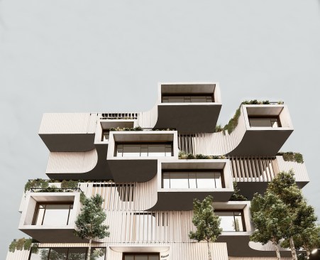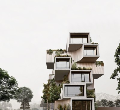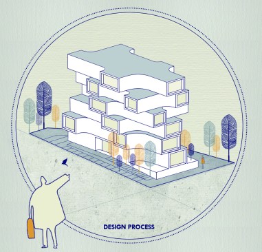 Structurally, the use of a central core and the creation of different consoles in different directions has produced an asymmetric and homogeneous form. Also, by preserving all the existing trees of the site and producing view platforms, it has created more formal attraction