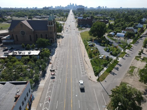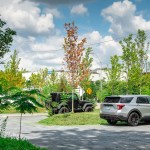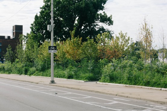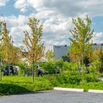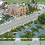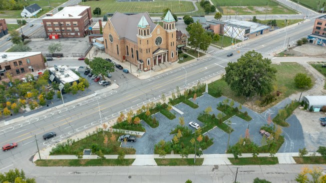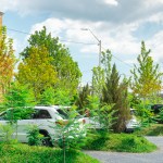 The team realized this singular vision through a series of design choices aimed at creating an authentic sense of place: Switching out the drab blacktop for rustic, bluish stone, the architects embedded the individual parking spaces in a verdant bank of sumac, maple, and juniper trees that runs around and through the site, pierced with paved paths leading to the surrounding sidewalk. A delicate balance of greenscape and carscape, PARK(ing) represents a promising model for similar urban conditions throughout Motown and beyond.