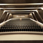 On the upper level of the foyer, the platform is used as an audience platform for different types of shows. The lodges attached to the platform, on the other hand have been designed as a mezzanine floor to serve either as a café, bookstore, bistro or for similar functions.