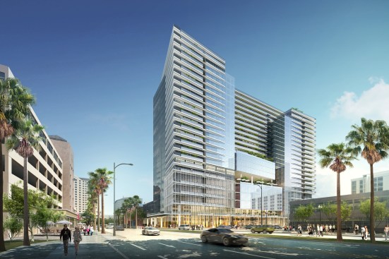 Punctuated by landscaped outdoor terrace steps wrapped in an undulating glass skin, the iconic, new 270-foot tower — dubbed Museum Place — would include 60,000 SF of expansion space for the Tech Museum on the ground floor; 210,000 SF of “creative office” on five stories above the Tech space; Twelve stories of condos; Three stories at the top for a boutique hotel, with luxury penthouse residences on the highest floor.