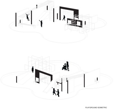 Although they have been designed according to specific natural and social conditions, both projects feature common elements, thus ensuring harmony among the built and natural environments that can be repeated or integrated into a system that is potentially applicable to any other context. One is the floor cement block, which can be easily adapted to any layout, be it natural or artificial. The creative combination of the blocks and in-situ poured concrete filling, generate new patterns like an urban tapestry. The second is the playground system: the various concrete walls and metal bars can be arranged in multiple configurations, thereby constituting different spaces that are suitable for all uses and users.