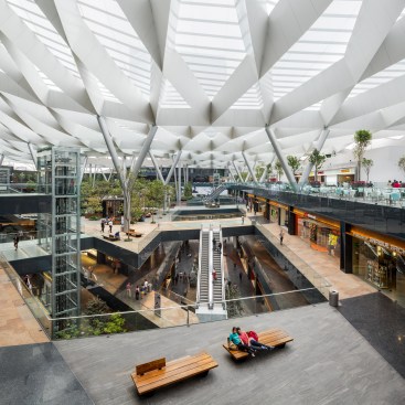 The shopping mall occupies the first four floors, with stores, cinemas and restaurants that fill these semi-enclosed spaces with life and cover approximately 91,500 sqm. The construction of an anchor store is soon to be finalized adding 25,000 sqm to the commercial area.