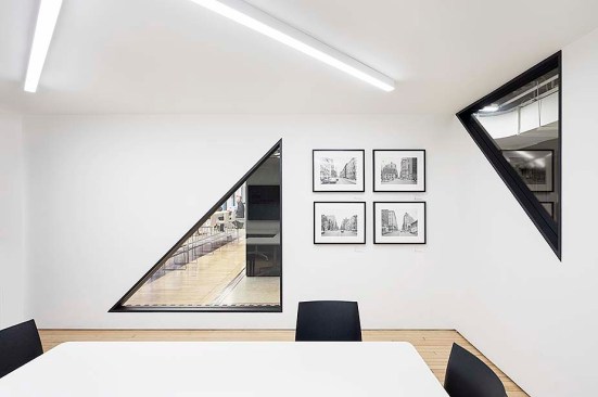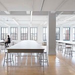 Situated atop their Greenwich Village campus complex, Parsons School of Constructed Environments consists of a series of striated meeting-box islands around which studio, faculty, and administrative spaces are organized. The active center of the school is the Skyroom, which serves as a sky-lit venue for guest lectures and student presentations in SCE’s Architecture, Industrial Design, Interior Design, Lighting Design, & Product Design programs.
