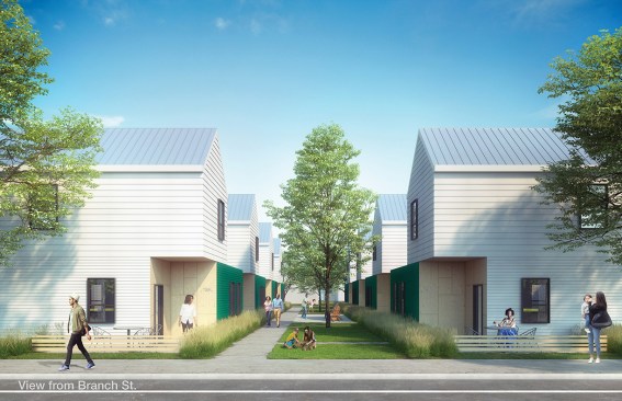 South Park, a historic and predominantly Black neighborhood in Raleigh, N.C., has suffered the hallmarks of systemic racism: redlining, predatory buying tactics, and gentrification. This affordable housing project was designed in a pro bono effort by Southeast-based LS3P to provide “equitable city design for all people, including affordable housing.” The $25 million, 226,000-square-foot scheme proposes 216 residential units across three sites with different zoning: 13 detached houses, two accessory dwelling units, 26 townhomes, and 175 units for renters earning between 30% and 70% of the area’s median income. Lots on predominantly residential streets feature one- and two-story gabled structures, while the former industrial site becomes a development of three-story walk-up apartments. All residents will have access to shared green spaces. The architects engaged visioning sessions with nonprofit leadership, staff, community, the Raleigh Planning and Development Department, and a pro bono team of civil, landscape, and modular-building consultants. The team’s strategy is to construct and sell the detached homes and townhomes at market rate first, with proceeds financing the rent-restricted units, which will be delivered for $100 and $130 per square foot. Though a market-driven solution would typically push out long-term residents, Passage Home seeks to match the demographics of the current population.