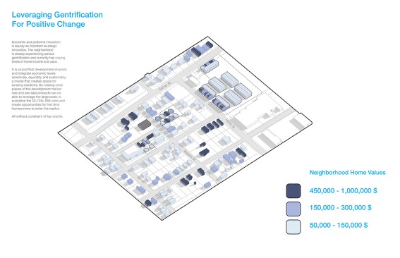 “This well-researched project addresses issues of displacement and offers design solutions that fit the neighborhood.” —Juror Ingrid Spencer