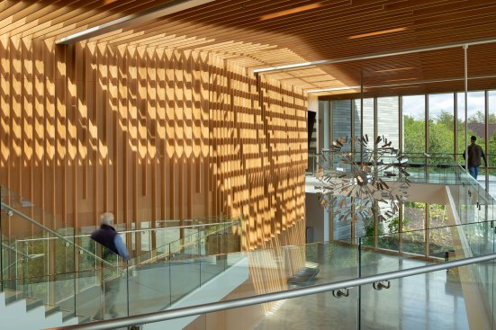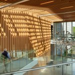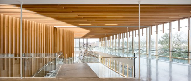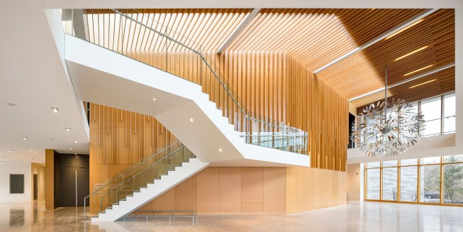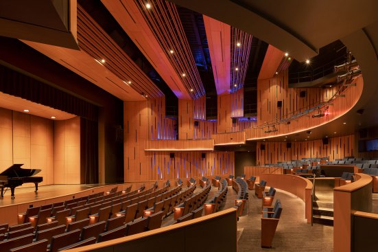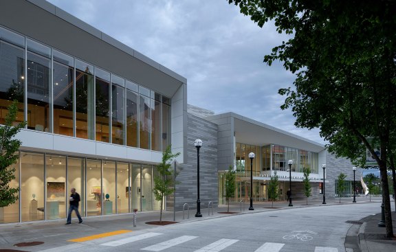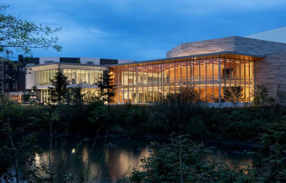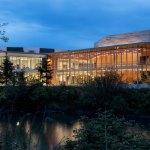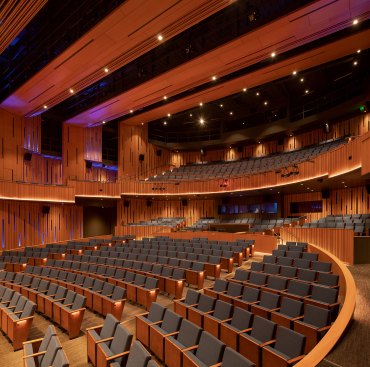 Envisioned as an iconic regional cultural arts center located within a transforming suburban context, the Patricia Reser Center for the Arts provides a multi-use venue for performing and visual arts, cultural and community events, and arts education. Situated on a prominent, yet irregularly shaped site, the organic expression of The Reser weaves together the new urban context and natural setting of Beaverton Creek. The art gallery, experimental performance lab, and lobby activate Crescent Street, a site for art festivals, with a glass-enclosed lobby that opens to the Arts Plaza and Beaverton Creek. The lobby and 550-seat multipurpose theater are comprised of interwoven and layered wood panels and sticks, drawing inspiration from the enveloping structure of a beaver dam.