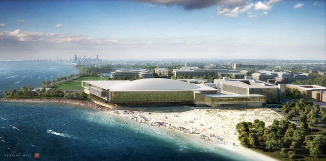 The entire project also will incorporate the replacement of three existing recreational basketball courts and an indoor running track currently located in the Henry Crown Sports Pavilion.