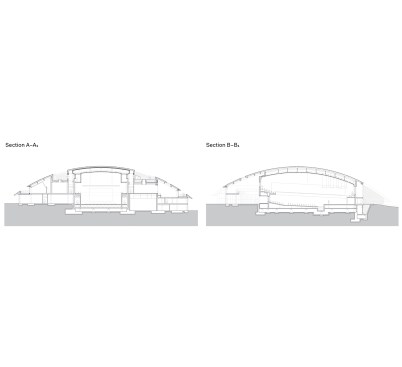 The last significant technological difficulty stemmed from Switzerland’s strict Environmental Protection Act and, in particular, the virtual prohibition of mechanical cooling in commercial and institutional buildings. But an unventilated concert venue, even in the country’s temperate mountain range, is unthinkable. Tschumi and Arup turned to the stack effect, devising a largely passive system that uses fans to draw in cool air through the sublevel space that houses the massive noise-isolating springs, and pushes hot air out through slots near the top of the dome above the concert hall. The approach also produces little noise or vibration—perfect for a music venue.