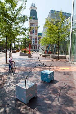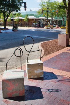Pettersen & Hein have created a series of concrete benches that interact with Columbus’ unique design history and physical setting in their expression, colors, function, and material. PAUSE is a series of spatial sculptures, which at once call for a meeting, a break, and the start of a dialogue. Dialogue is also the starting point for the design, which relates directly to Alexander Girard's original 1964 streetscape color scheme for Washington Street — a hallmark of the street. Many of the buildings have since been repainted, making PAUSE an ode to Girard's innovative color codes.
