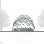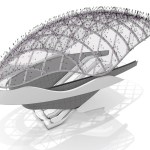 This design exploration for a canopy is situated at the site of the United States Navy Memorial, adjacent to the National Archives in the heart of Washington, DC, Pavillon de L’eau cantilevers over the metro entrance as its form is animated by the flow of travelers and the environment. The sites memorial was first proposed during the planning of the District by the French-born American architect Pierre L’Enfant which honors all past and present personnel of the Navy, Marine Corps, Coast Guard and Merchant Marines. At its center, the memorial plaza is flanked by a series of cascading pools and fountains, creating a unique microenvironment. This design seeks to en¬capsulate the spirit of the memorial while providing shelter and a prominent gateway to and from the site. The form draws inspiration from marine technology and the legacy of marine engineering, our design attempts to establish an interplay between fluid form, structure, and a transparent membrane. The complex geometry of the canopy is constructed out of primary and secondary steel tube sections with steel supports coordinated along each primary section which hosts the membrane support profiles. Each steel support lifts the membrane up from the primary and secondary structure, amplifying the depth of each layer and making visible the complex arrangement of each system. The transparent membrane is formed of sections which wrap over the structure and are inflated, creating a shifting reflection as the sky is refracted by the convex pillows and light filters through. The design of the canopy is to be a reflection of its surroundings, the navy memorial and make visible the complexity of the city in motion.